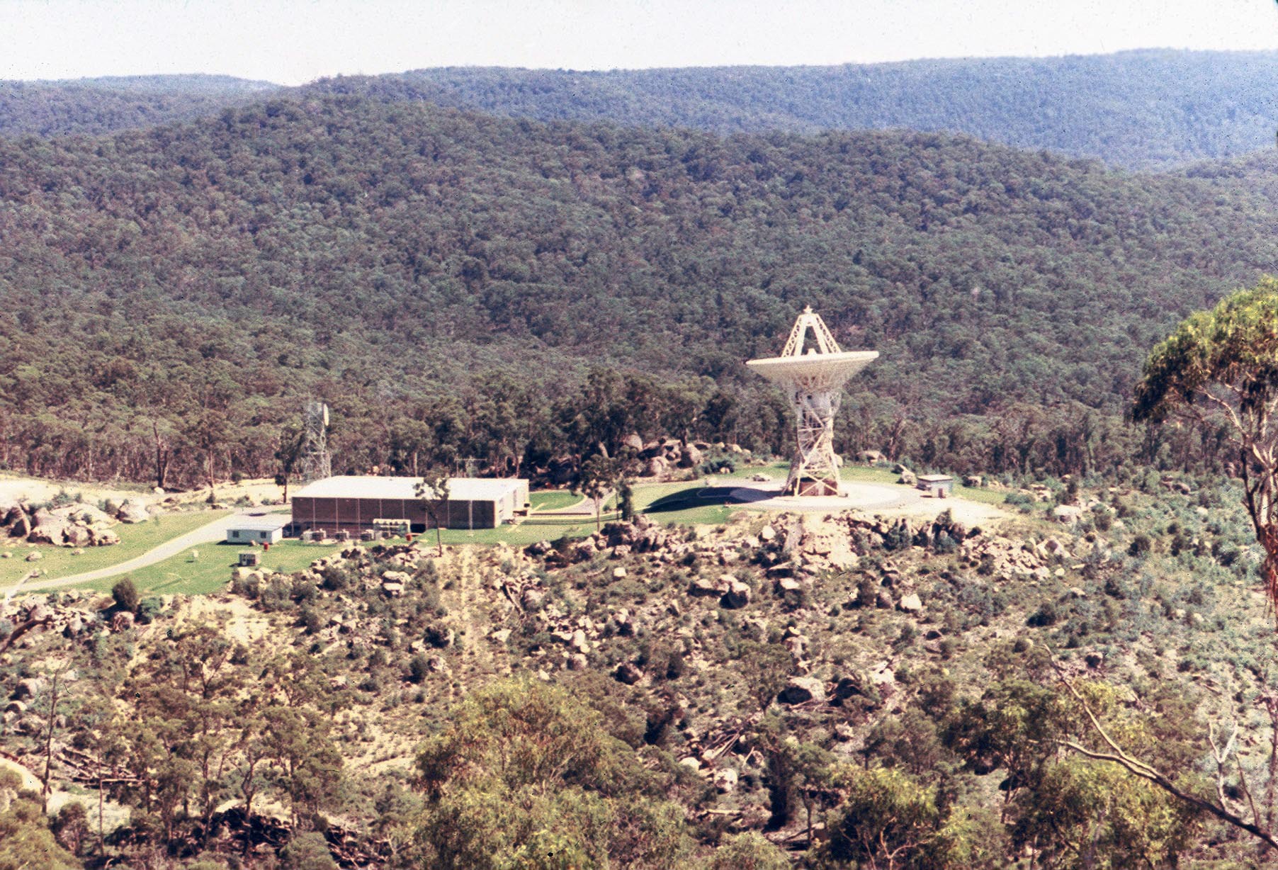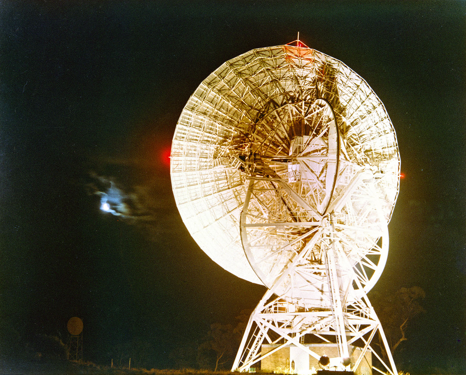 Hamish Lindsay took this photo at Honeysuckle Creek, around 9:00pm Australian Eastern Standard Time, Christmas Eve 1968 – as Honeysuckle and its Wing, HSK-X at Tidbinbilla, tracked Apollo 8 on its first Lunar Orbit. |